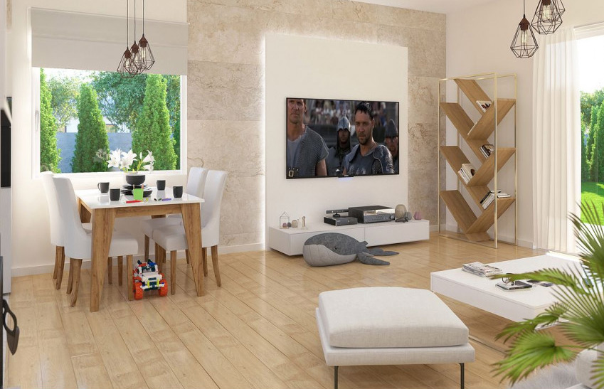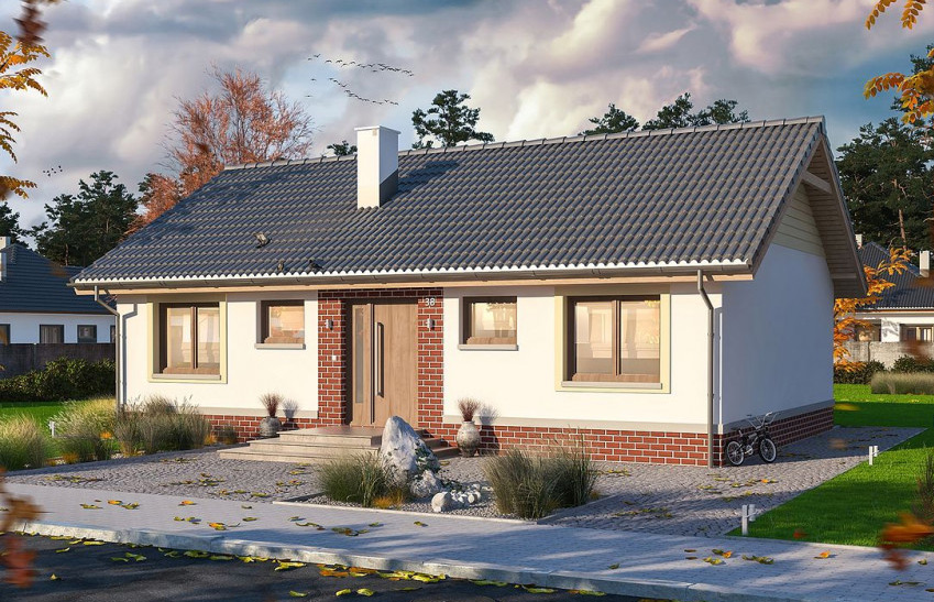 Внутренняя планировка дома включает в себя три спальни, ванную комнату, гостиную и кухню.